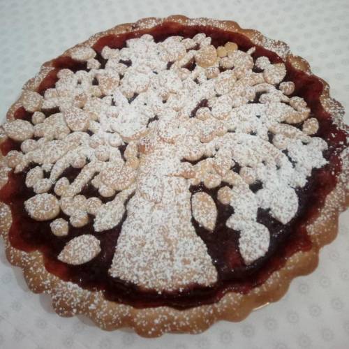 Torta coreografica fatta di 2 basi di pasta frolla farcite